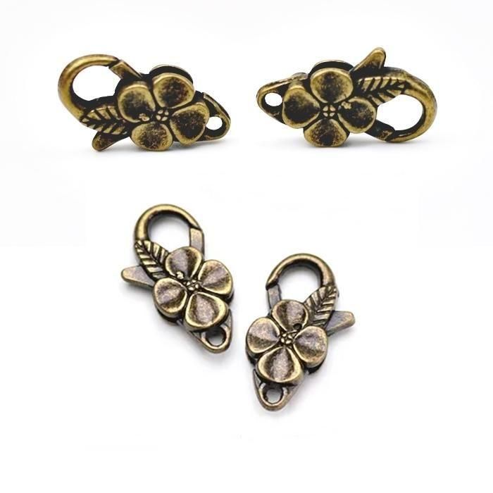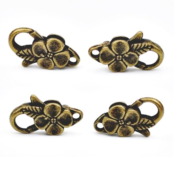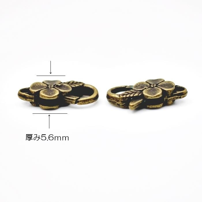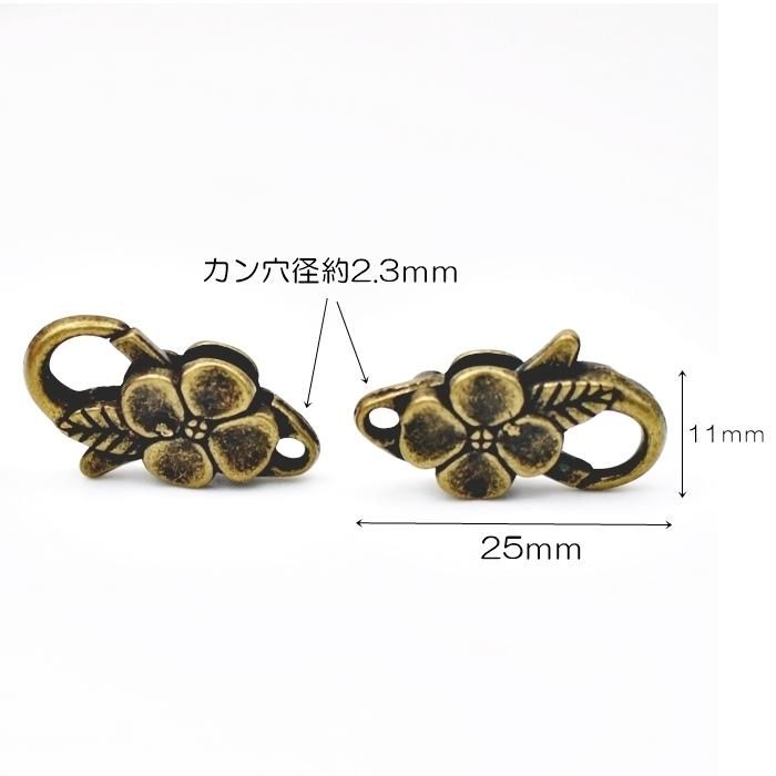 アンティークゴールド カニカン・ロブスタークラスプ留め金具 フラワーモチーフ 25mm 1個/10個