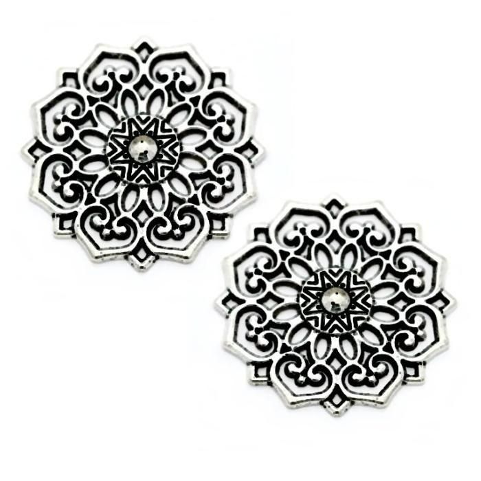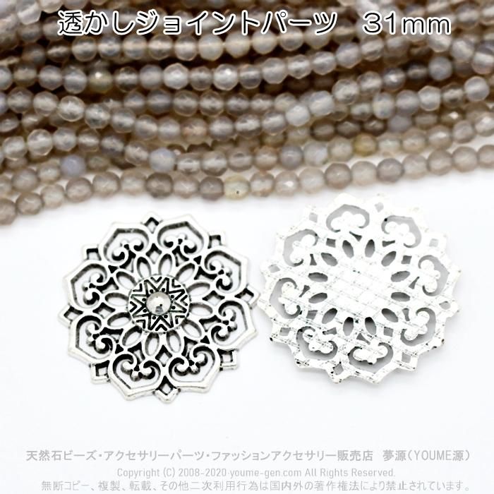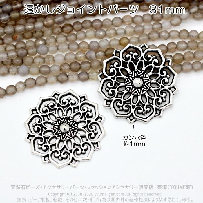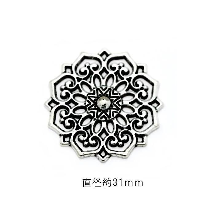 シルバー古美 フラワーモチーフ 透かしレースパーツ 直径約31mm 多カン アクセサリーパーツ【1個/10個割引】