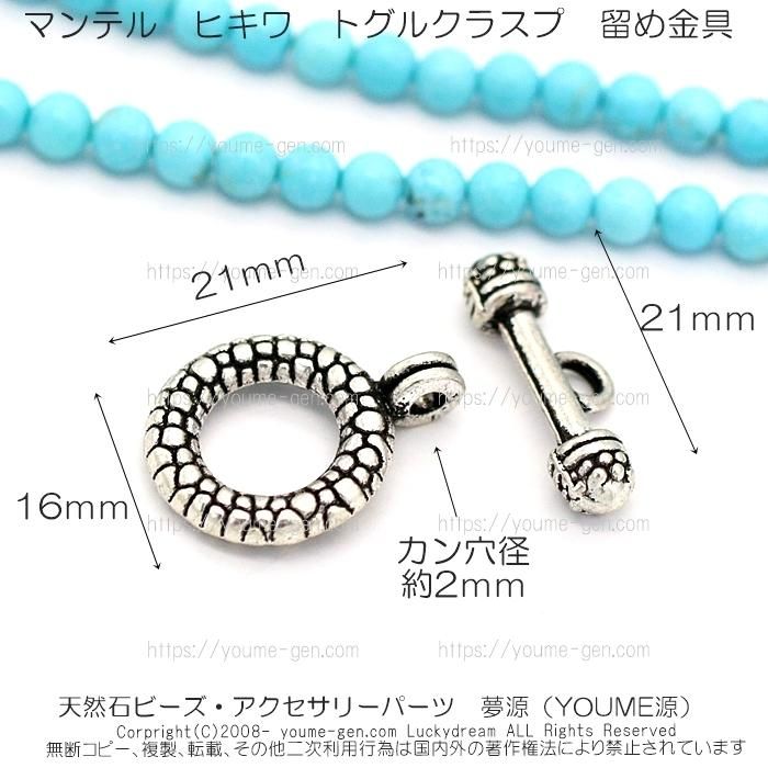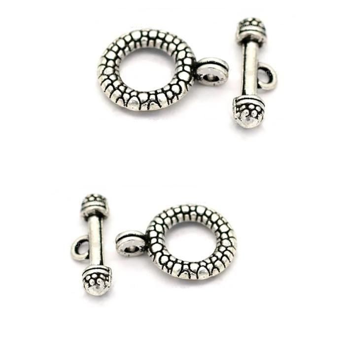 シルバーカラー メタル合金製 マンテル・トグルクラスプ 留め金具パーツ 丸型21mm バー21mm カン穴径2mm【1組/10組割引】