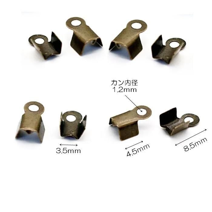 ハンドメイドアクセサリー制作に便利な メタル合金製の紐留めエンドパーツ(金具・カツラ金具)アンティークゴールド調カラー です。